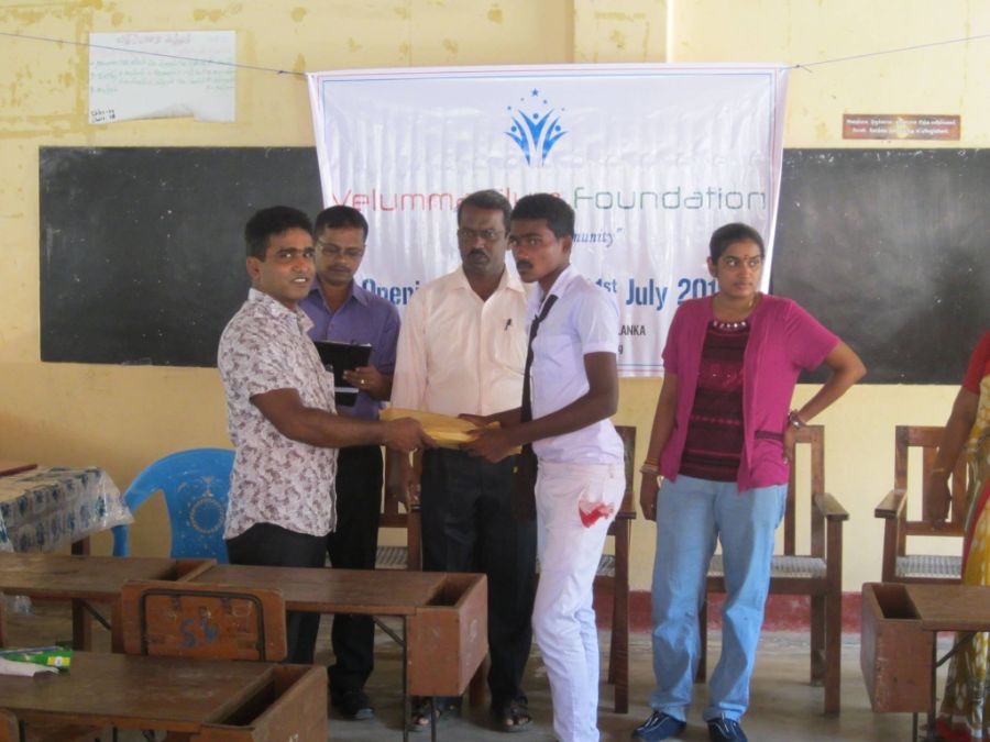Supported students of J/Siththyvinayagar Vidyalayam who sat for the GCE O/L Exam in Dec 2016 in remembrance of Mr. Velummayilum, on his 27th death Anniversary on 31st Aug 2016 with a school stationery packages donation program facilitating the students with necessary stationery supplies for their studies.