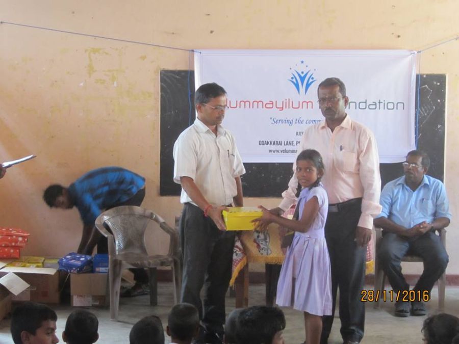 Supported students of Siththyvinayagar Vidyalayam providing them with pairs of shoes in encouraging them to attend the school regularly.