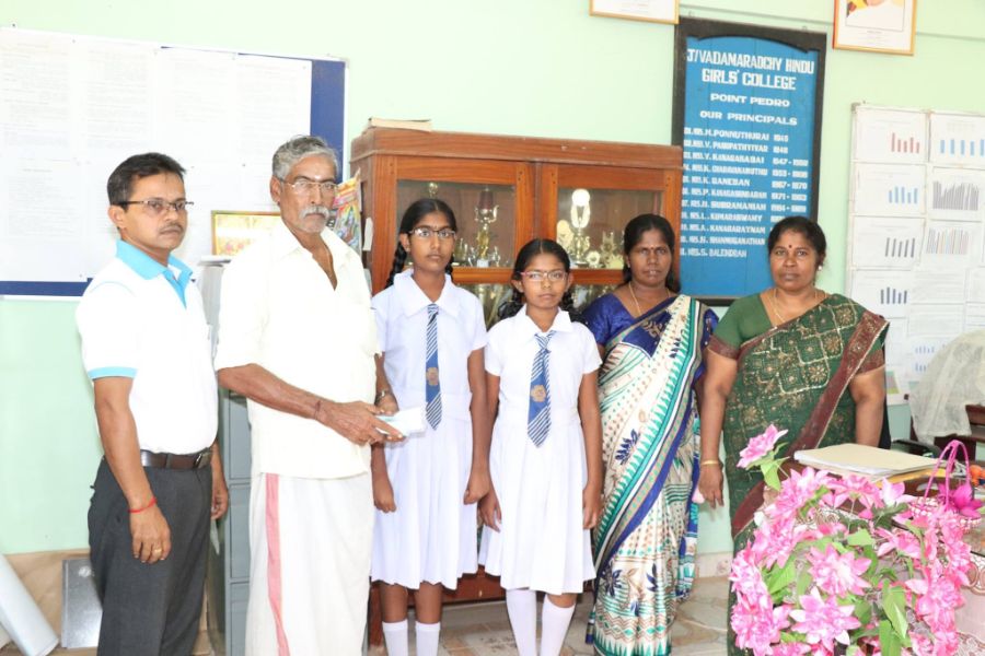 Facilitated dry food packages for families and eyeglasses for students with the participation of Asst. Director of Planning, Mr. K. Jeyakumar, Social Service Officer, Mr. P. Sarmilan from Divisional Secretariat office Point Pedro, Yogendran Kugathas, Lawyer and Senior Public Health Inspector, Mr. Sathees in remembrance of the of Mr. Late Mayilvaganam Velummayilum on his 29th death anniversary.