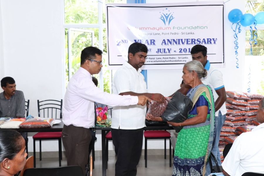Velummayilum Foundation celebrated its 2nd anniversary on 31st July 2018. Dry Food items were distributed to 100 families with Divisional Secretary of Point Pedro Mr. A. Sri invited as the Chief Guest.