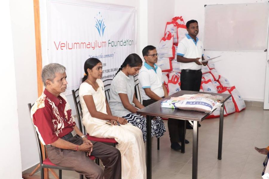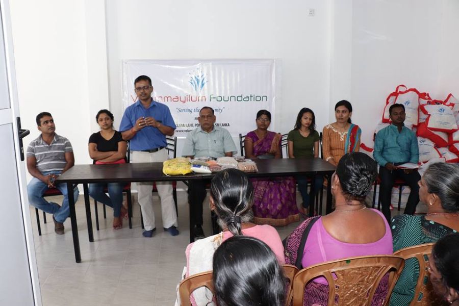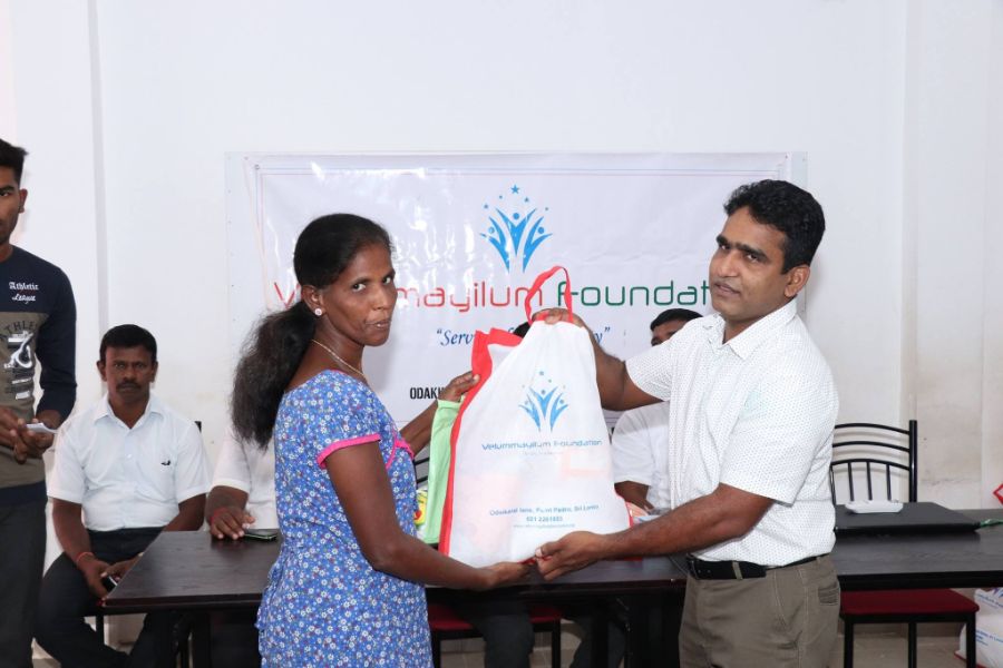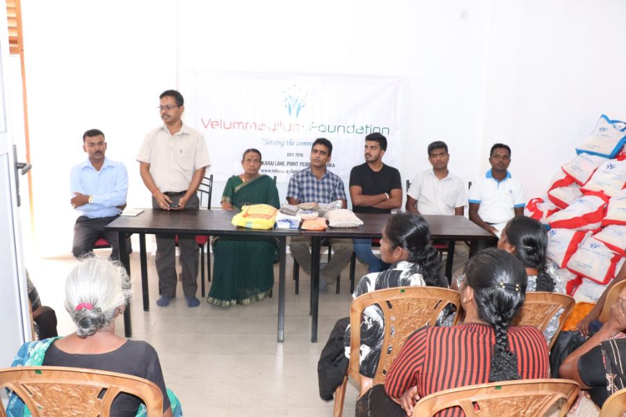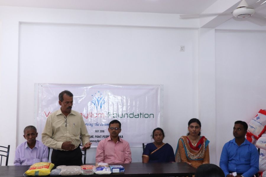 Held the monthly dry food packs distribution program for the month of March for the families with the participation of Professor M. Nadarajasuntharam, Women Development Officer from Divisional Secretary office of Point Pedro, Mrs Thayalini and Velummayilum Foundation Coordination office staff from Colombo Mr. Asanka, Mr. Wasantha, Mrs. Amali and Ms. Nethmi