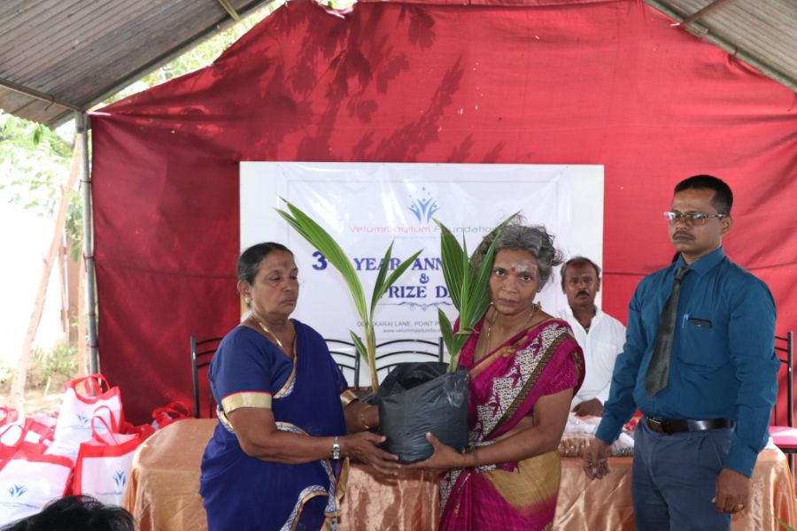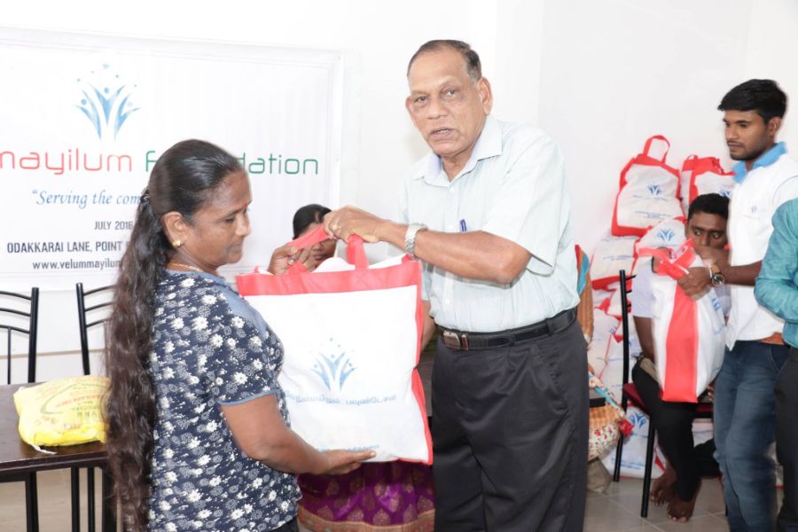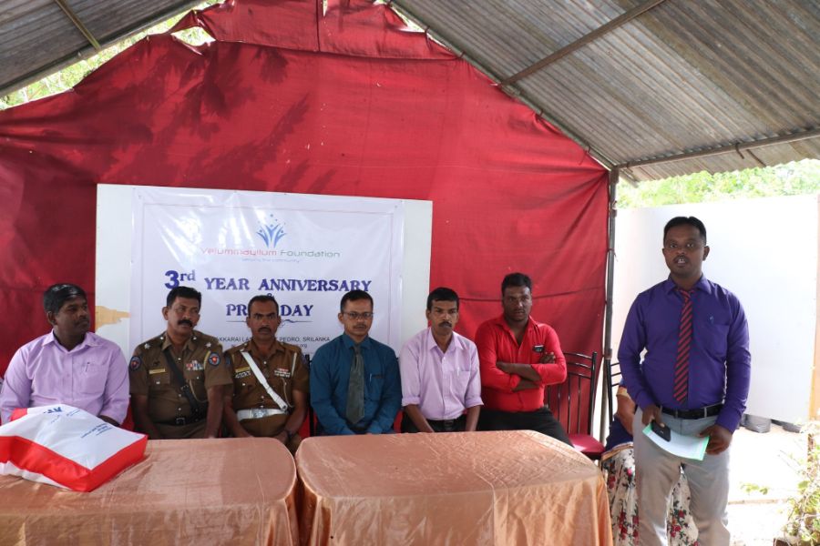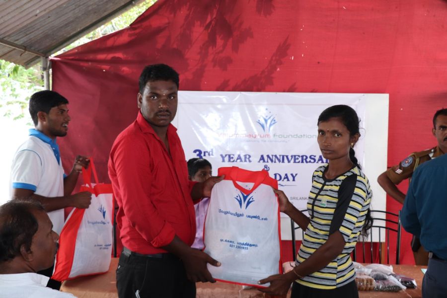 3rd Year Anniversary of Velummayilum Foundation monthly Dry Food parcels and Coconut Plant issued to 100 women headed family on 31st July 2019, Wednesday Morning. Rural Development Officer Mr. Ravigaran, Social Service Officer Mr. Sarmilan from Divisional Secretary office and OIC of Point Pedro Police Mr. Janaka, Mr. Seneviranta participated and issued the items to beneficiaries.