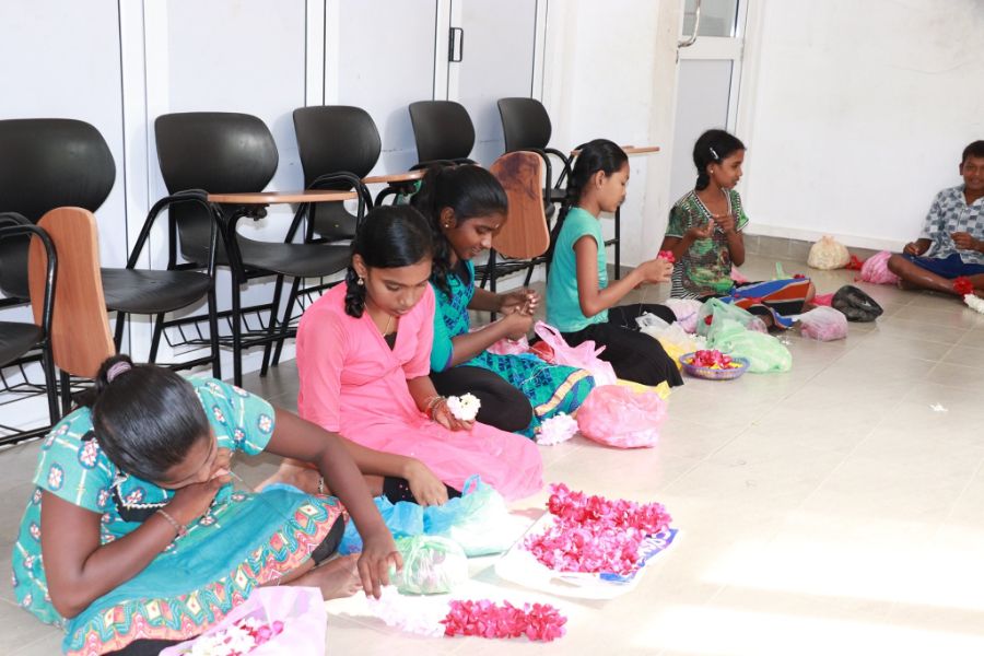Navarathri & Children Day Competition to foundation students their personal talents by drawings, Garland prepare and hand arts Kolam filling by flower, flour etc..