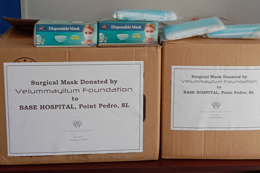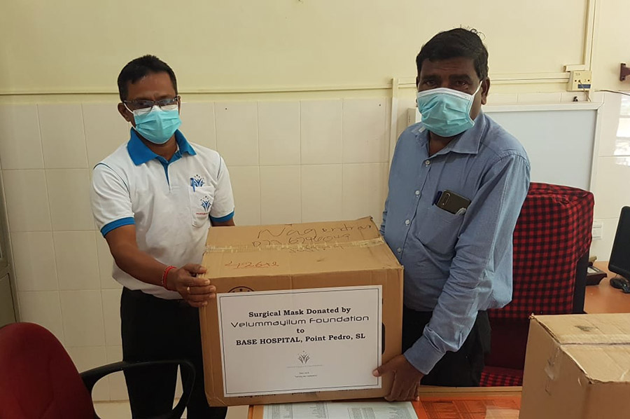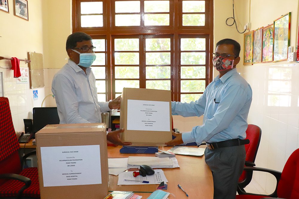 Velummayilum Foundation has donated surgical face masks to the Base Hospital, Pont Pedro, Sri Lanka. Dr. Kamalanthan received the face masks on behalf of the hospital.