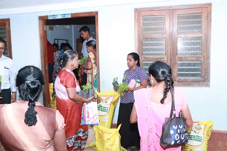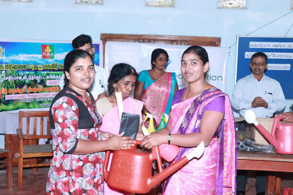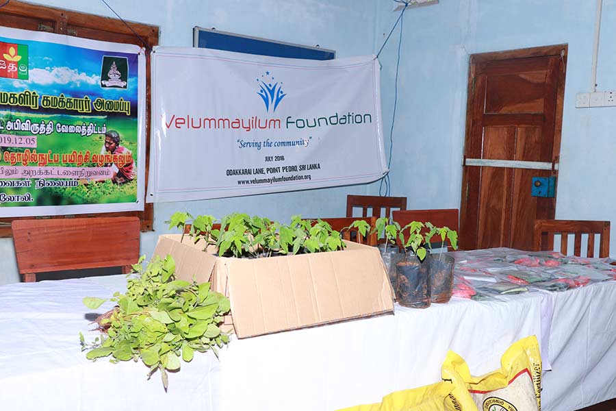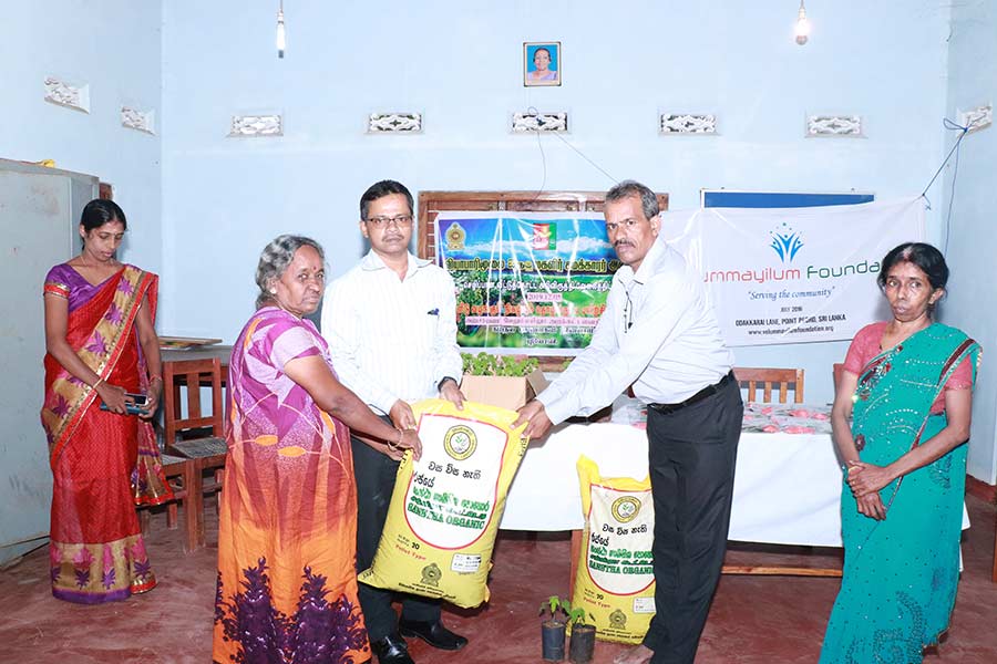 Velummayilum Foundation continues promoting home Organic farming and distributed Organic Compost, vegetable seeds and fruit plants. Agricultural Inspector Mr. Baskaran, Assistant Director of Planning Mr.Jeyakumar, Mr. Punitharaj from Divisional Secretariat office participated. Pictures were taken at Sithamu Women group at Alvai North, Viyabarimoolai