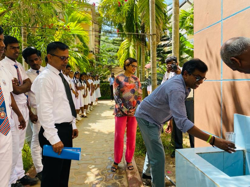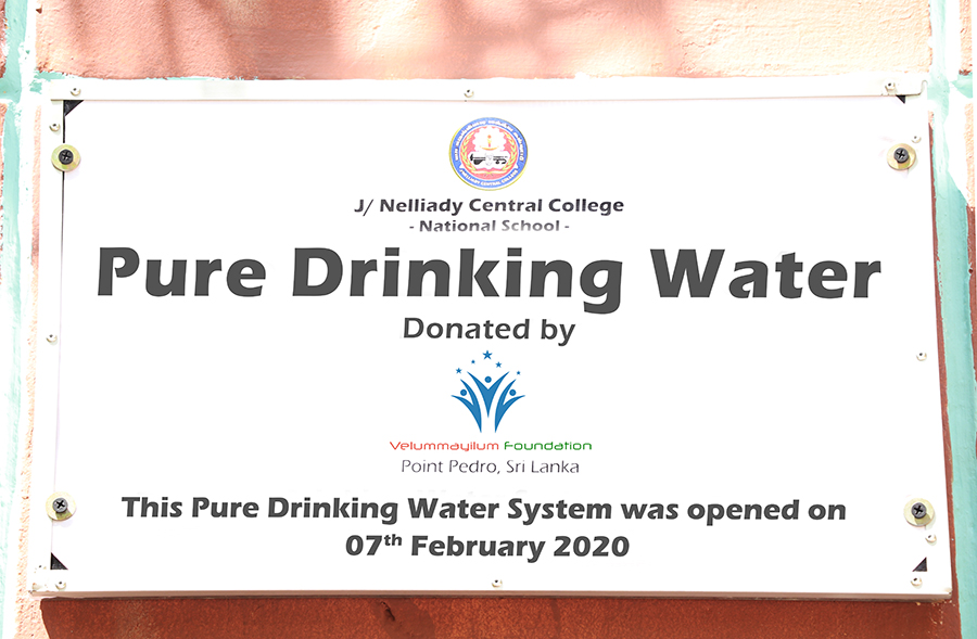 Velummayilum Foundation has handed over new water purification plant at the Nelliady Central College, Jaffna. The facility was opened by Daya Thayan & Sumi Thayan, in the picture Mr G. Krishnakumar, Principal Nelliady Central College who presided the function.