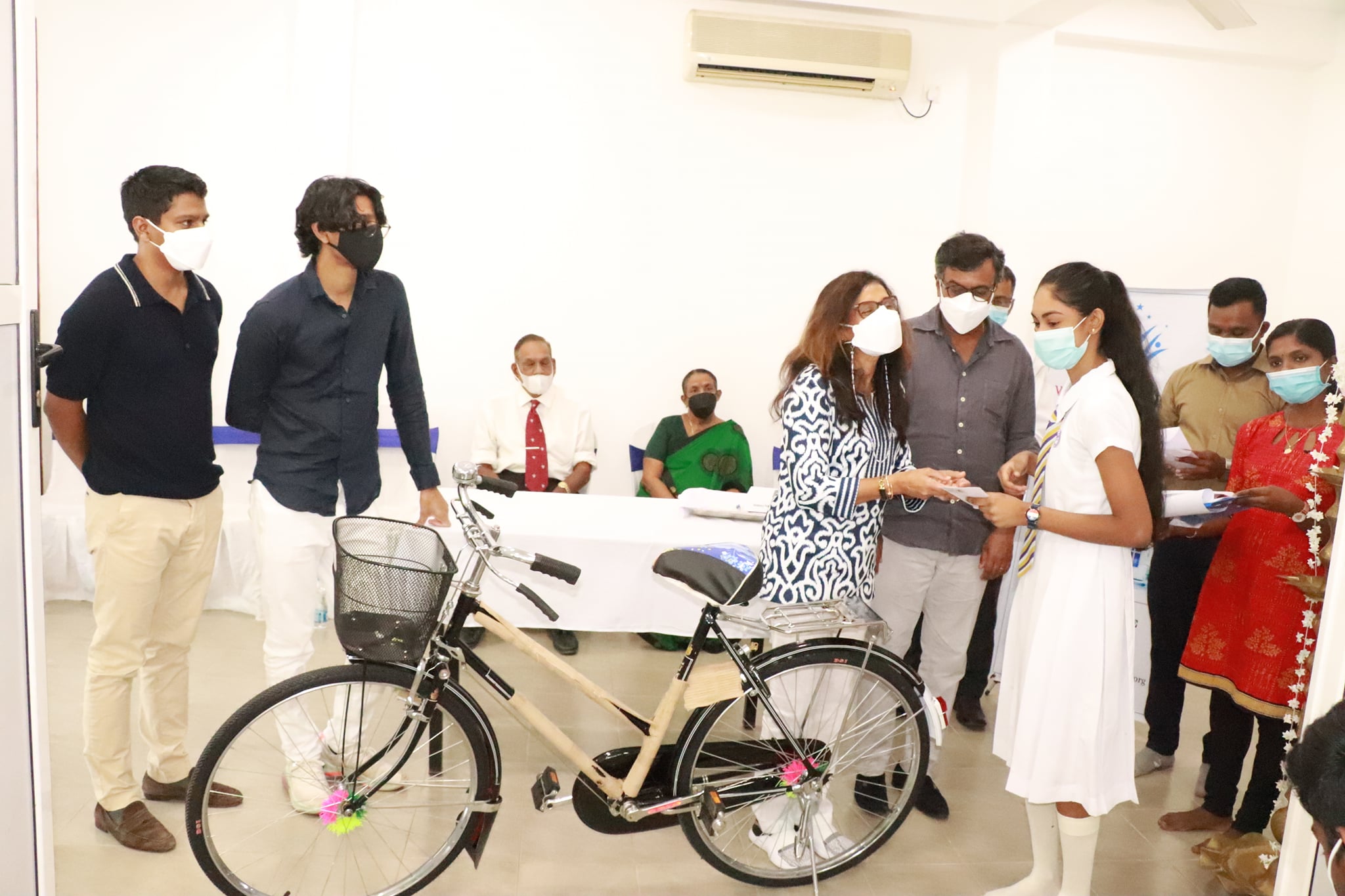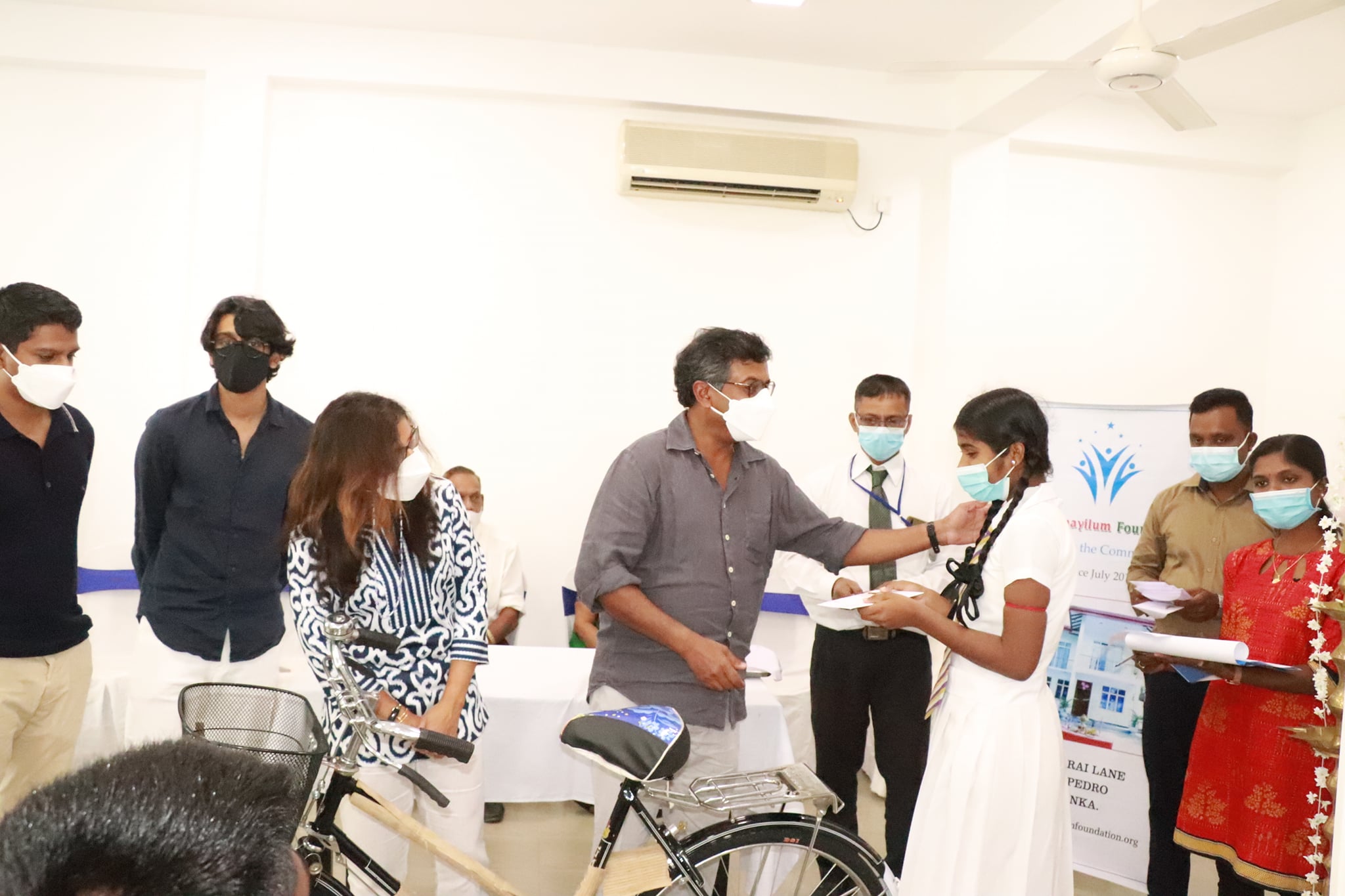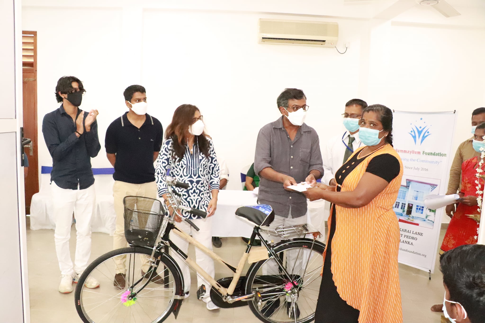 Daya and Sumi presented bikes to 10 students from schools in Point Pedro to help them get to classes more easily. The students were chosen to reward their good behaviour and hard work and to support youngsters from families facing financial challenges.