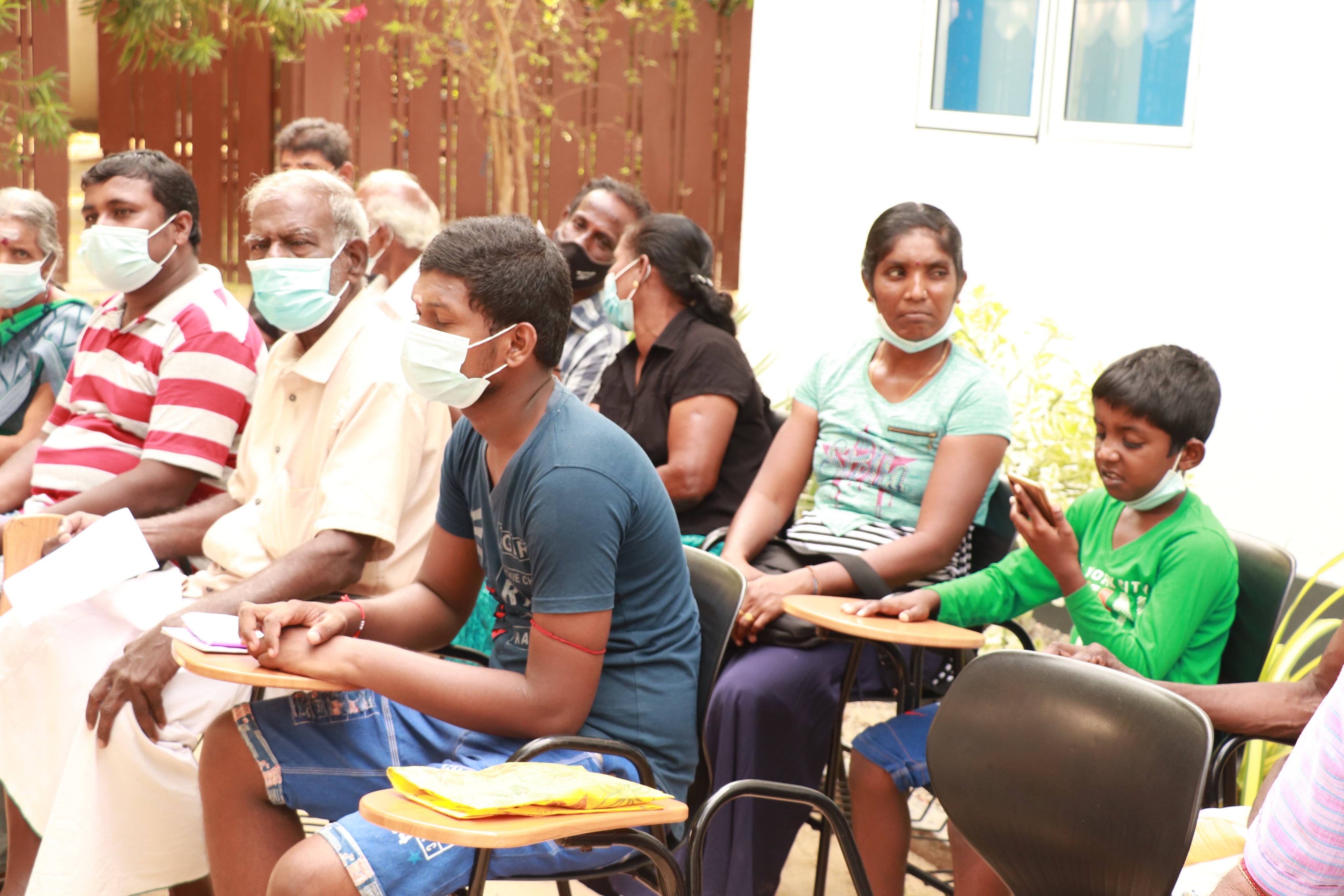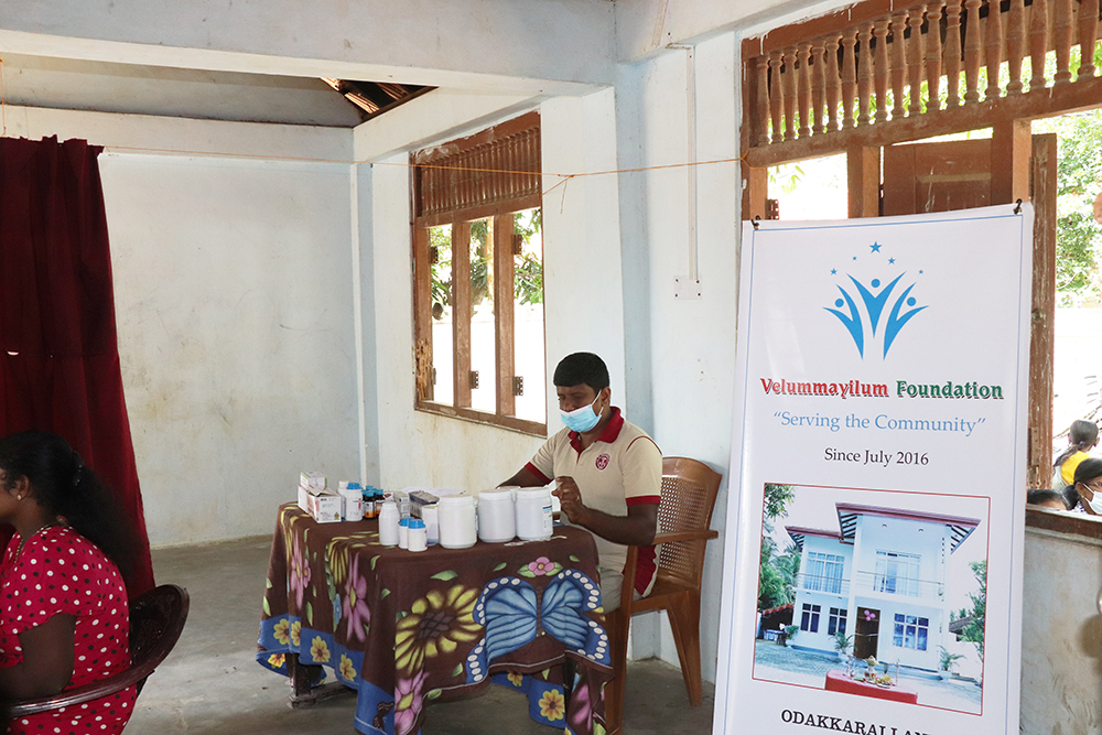 More than 60 patients aged 50 and over benefited from a Velummayilum Foundation-funded medical clinic staffed by doctors from Base Hospital. A further 45 people had eye tests carried out by staff from Dr.Chandrakumar Jaffna NRS Hospital.